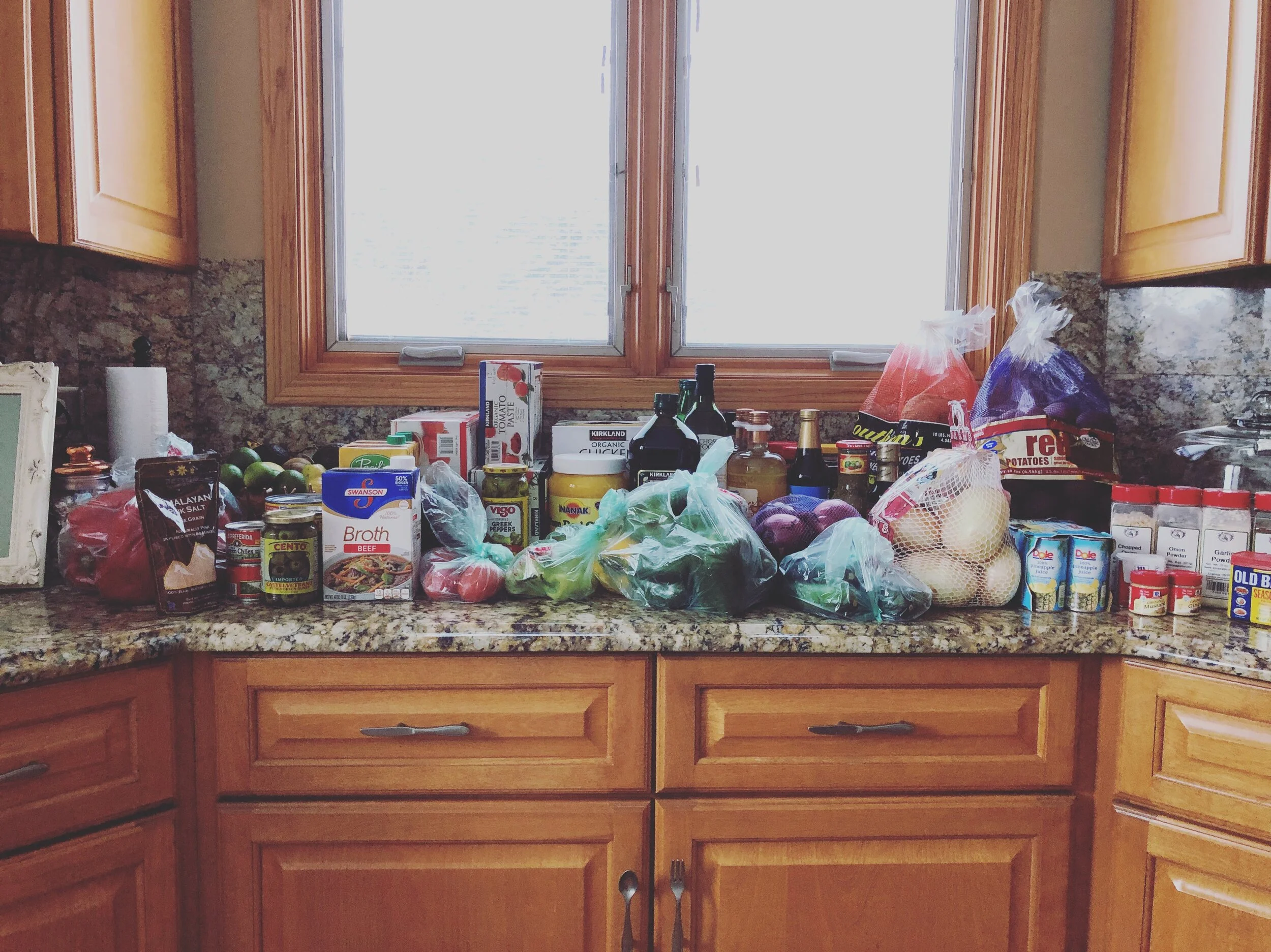 Once home and all of my pantry and produce items are laid out on my counter and frozen items are in the freezer I get started organizing it all into sections: canned goods, spices, produce and so on. This helps when you have about 75 things all scattered on your counter. If you didn't label your ziplock bags before, do them now before you start filling everything.